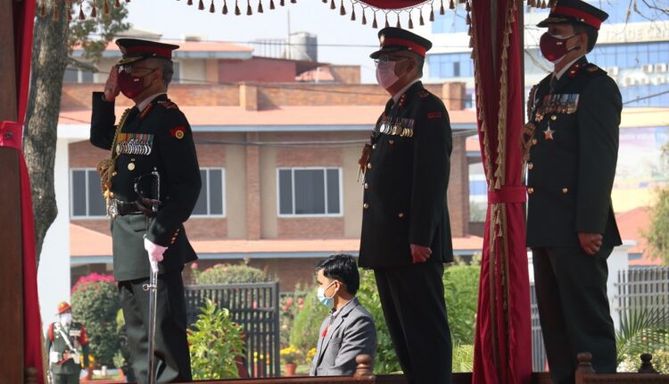 काठमाडौं । भारतीय स्थलसेनाध्यक्ष जनरल मनोजमुकुन्द नरवणेको सम्मानमा नेपाली सेनाको एक टुुकडीले सम्मान गारत अर्पण गरेको छ । सैनिक मुख्यालय जङगीअड्डामा बिहीबार आयोजित समारोहमा सेनाध्यक्ष नरवणेले सो अवसरमा सैनिक टुुकडीबाट प्रस्तुत सम्मान गारत निरीक्षण गरे ।