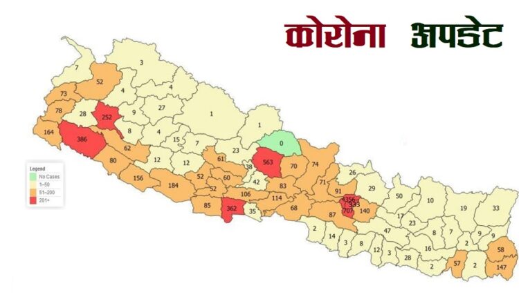 यसैगरी कर्णाली प्रदेशका सुर्खेतमा ८, रुकुम पश्चिममा २ तथा कालिकोट र दैलेखमा एक/एक जनासहित १२ जना संक्रमित थपिएका छन् । यस्तै, सुदूरपश्चिमका कैलालीमा ३३, कञ्चनपुरमा १८, अछाममा ५, डडेल्धुरा र दार्चुलामा ३/३, बझाङ र बैतडीमा २/२ तथा डोटीमा एक गरी ६७ जना थपिएका छन् ।