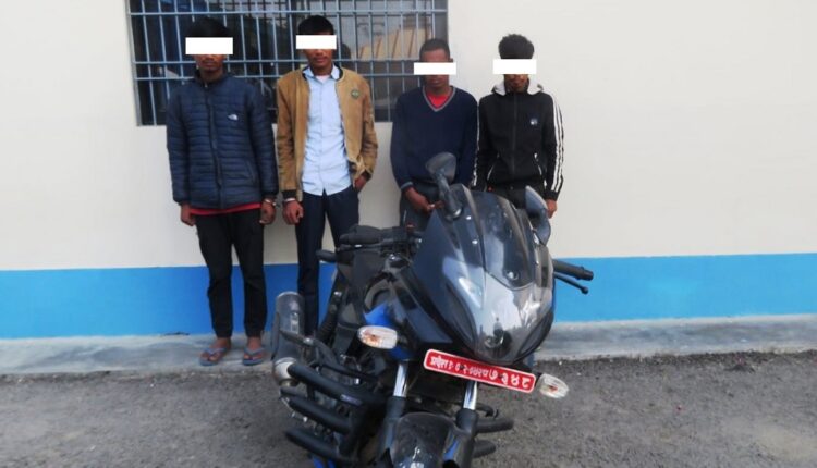 मोरङ । चोरी भएको मोटरसाइकलसहित चोरीमा संग्लग्न ४ जनालाई जिल्ला प्रहरी कार्यालय मोरङले पक्राउ गरेको छ ।