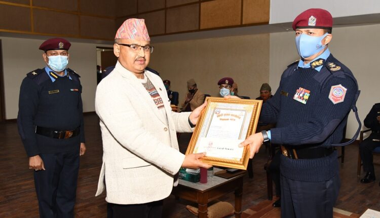 प्रहरी महानिरीक्षक शैलेश थापा क्षेत्रीले बेरुजु फर्छ्यौट गरी नेपाल प्रहरीलाई सर्वोत्कृष्ट तुल्याउने कार्यमा उत्कृष्ट कार्य गर्ने प्रहरी अधिकृतहरुलाई प्रहरी प्रधान कार्यालयमा आइतबार आयोजित एक समारोहमा ८ हजार रुपैयाँ नगद पुरस्कारसहित प्रशंसापत्र प्रदान गरे । पुरस्कृत हुने प्रहरी अधिकृतहरुमा प्रहरी वरिष्ठ उपरीक्षक दिपक थापा, प्रहरी नायव उपरीक्षक निर्मल बुढाथोकी, प्रहरी नायव उपरीक्षक वीरेन्द्र गोदार, प्रहरी निरीक्षक दिनेश तिमिल्सिना र प्रहरी सहायक निरीक्षक बल बहादुर बस्नेत छन् ।