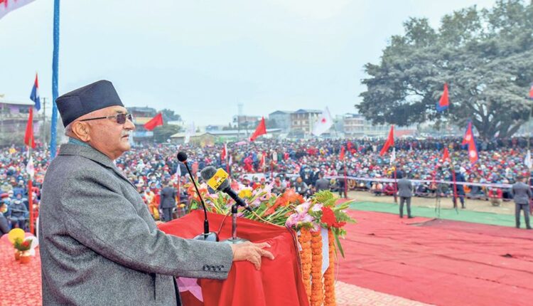 चितवन । प्रधानमन्त्री केपी शर्मा ओलीले नेपाल र नेपालीको स्वाभिमान उच्च बनाउन आफू लागिपरेको र कसैको सामु घुँडा नटेक्ने बताएका छन् । नेकपा ओली समूहद्वारा चितवनको भरतपुरमा शनिबार आयोजना गरिएको जनसभालाई सम्बोधन गर्दै पार्टी अध्यक्षसमेत रहेका ओलीले देशको रक्षाका लागि आफूले नेतृत्व गर्ने र कुनै पनि हालतमा जनतालाई धोका नदिने प्रतिबद्धता जनाए । नेपाल र नेपालीको स्वाभिमान बचाउन आफूले अगुवाइ गर्ने र त्यसमा जनताको साथ पाउनेमा ढुक्क रहेको उनले बताए ।