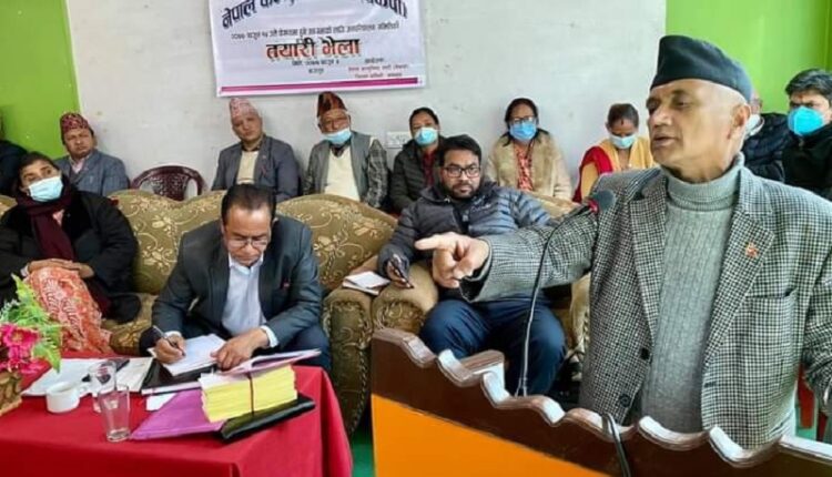 बागलुङ । नेपाल कम्युनिस्ट पार्टी (नेकपा) का नेता खगराज अधिकारीले प्रचण्ड र माधव नेपालको कपाली तमसुकका कारण पार्टी संकटमा परेको बताएका छन् । केपी ओलीलाई दुवै पदबाट बर्खास्त गरी एक जना प्रधानमन्त्री र अर्को पार्टी अध्यक्ष बन्ने कपाली तमसुक गरेका कारण पार्टी संकटमा परेको भन्दै नेता अधिकारीले पार्टीलाई विघटनमा लैजाने प्रचण्ड–माधवको षडयन्त्र चिरेर अगाडि बढ्न नेता कार्यकर्तालाई निर्देशन दिए ।