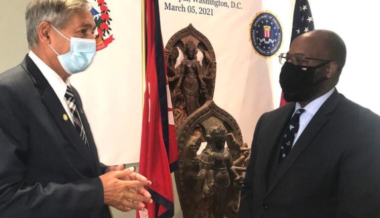 अमेरिकी संघीय अनुसन्धान ब्यूरो एफबिआईका अपसाहयक निर्देशक तिमोथी एन डन्हाम अमेरिकाका लागि नेपाली राजदूत युवराज खतिवडालाई वासुदेव–कमलाजाको मूर्ति हस्तान्तरण गरे ।