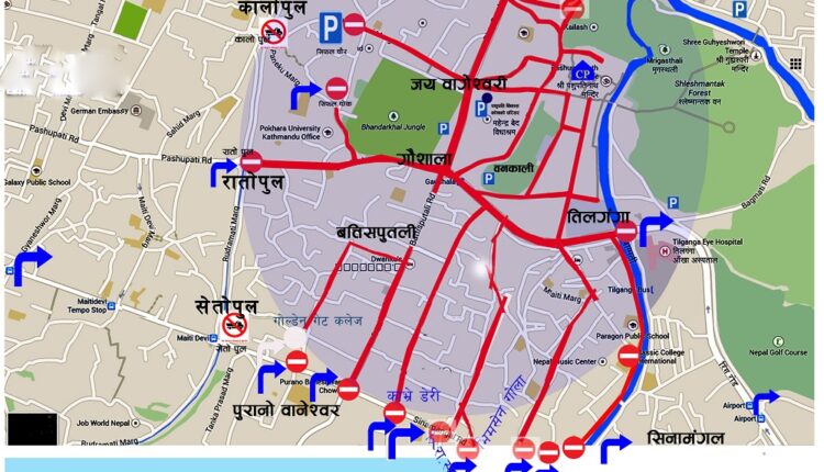 मालबाहक सवारी साधनहरु तीनकुनेबाट सिनामंगल तिलगंगातर्फ, जोरपाटी नारायणटारबाट करिडोर हुँदै गौरीघाटतर्फ आउने , सिनामंगल पुलबाट करिडोर हुँदै होटल महाराजा निस्किने सडकतर्फ र जोरपाटी बौद्धतर्फबाट आउने मालवाहक सवारी साधन चुच्चेपाटीबाट चाबहिलतर्फ आउन निषेध गरिने ट्राफिक प्रहरीले जनाएको छ ।