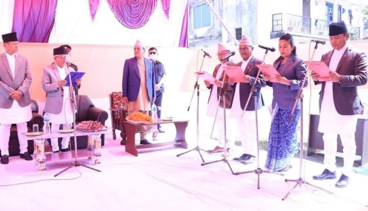 आर्थिक मामिला तथा योजनामन्त्री टंक आङबोहाङ, सामाजिक विकासमन्त्री उषाकला राई, भूमि व्यवस्था कृषि तथा सहकारीमन्त्री राम राना, भौतिक पूर्वाधारमन्त्री अम्बिरबाबु गुरुङले सपथ लिएका हुन् । यस्तै, कृषि राज्यमन्त्री कला घले र वन तथा वातावरणा राज्यमन्त्री राजकुमार ओझाले पनि आजै सपथ लिएका छन् ।