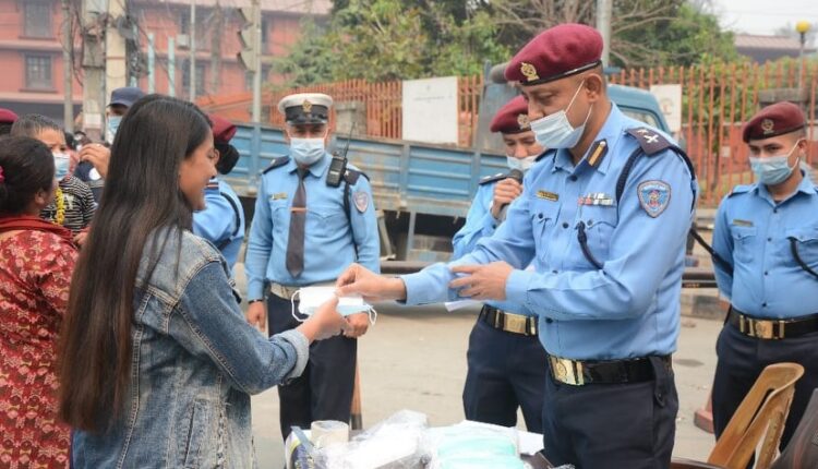 प्रहरीले माइकिङ गरेर मास्क, स्यानिटाइजर र सामाजिक दुरी कायम गर्न आग्रह गरेको छ ।