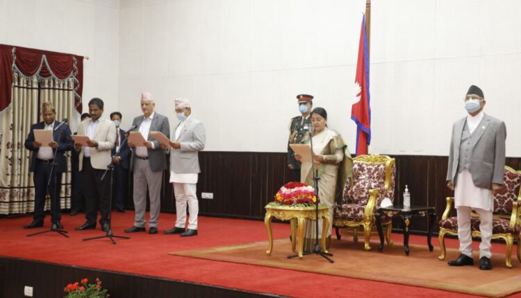 काठमाडौं । राष्ट्रपति विद्यादेवी भण्डारीले पुनः नियुक्त चार मन्त्रीलाई पद तथा गोपनियताको शपथ ग्रहण गराएकी छन् ।