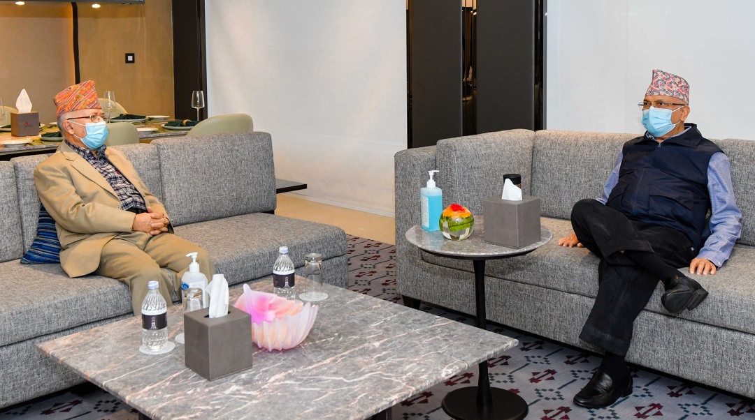 काठमाडौं । प्रधानमन्त्री एवम् नेकपा (एमाले) का अध्यक्ष केपी शर्मा ओली र वरिष्ठ नेता माधव कुमार नेपालबीचको भेटवार्ता सकिएको छ ।