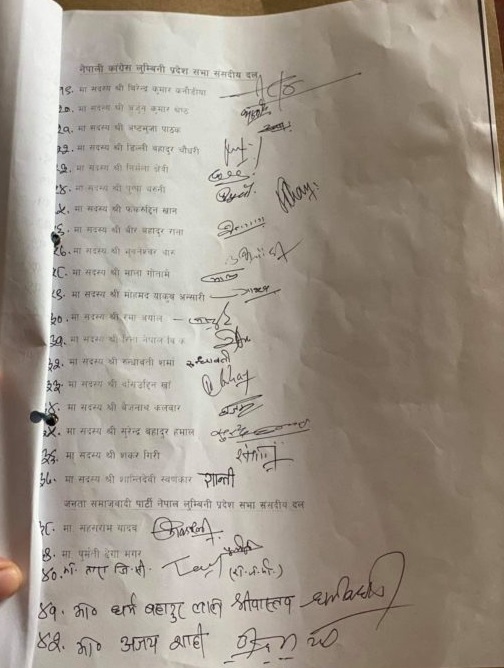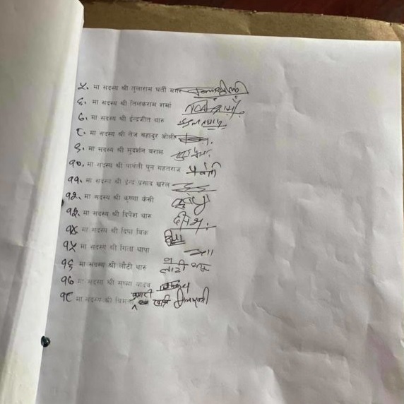 यसमा सूर्य चिन्हबाट चुनाव जितेका स्वतन्त्र राजनीतिक समूहका धर्मबहादुर लाल श्रीवास्तव र अजय शाही तथा साबिकको नेकपाबाट चुनाव जितेकी विमला केसीले पनि हस्ताक्षर गरेकी छन् ।