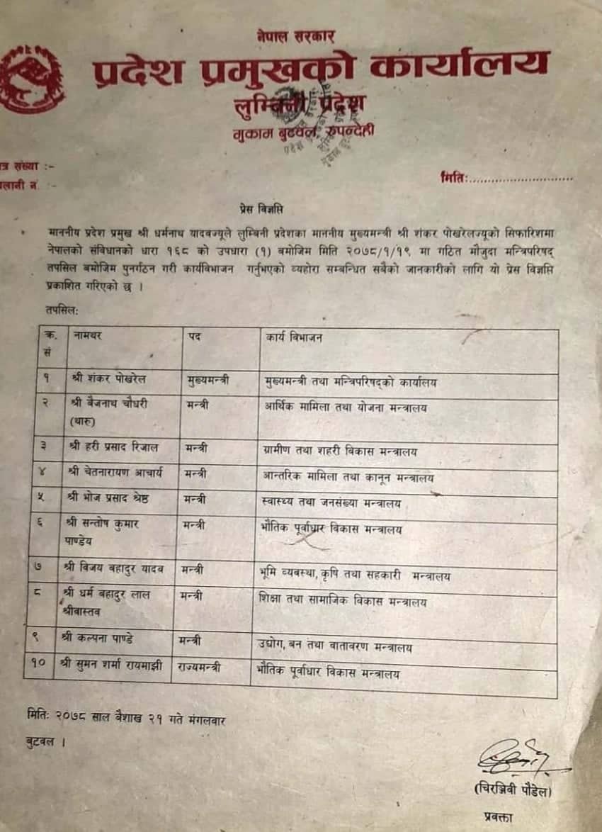 लुम्बिनीको मन्त्रिपरिषद् विस्तार तथा हेरफेर [सूचीसहित]