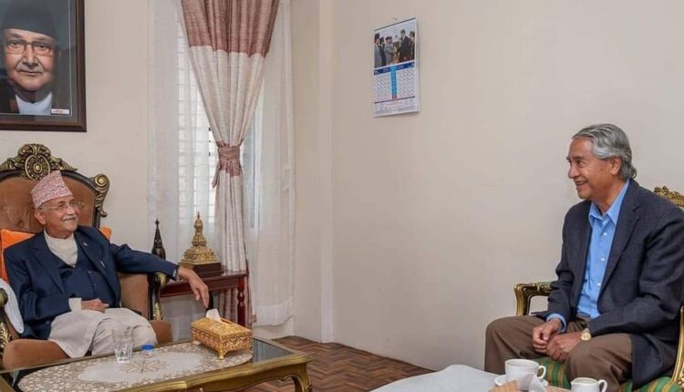 काठमाडौं । प्रधानमन्त्री तथा नेकपा एमालेका अध्यक्ष केपी शर्मा ओली नेपाली कांग्रेस सभापति शेरबहादुर देउवासँग छलफलका लागि देउवा निवास बूढानीलकण्ठ पुगेका छन् ।