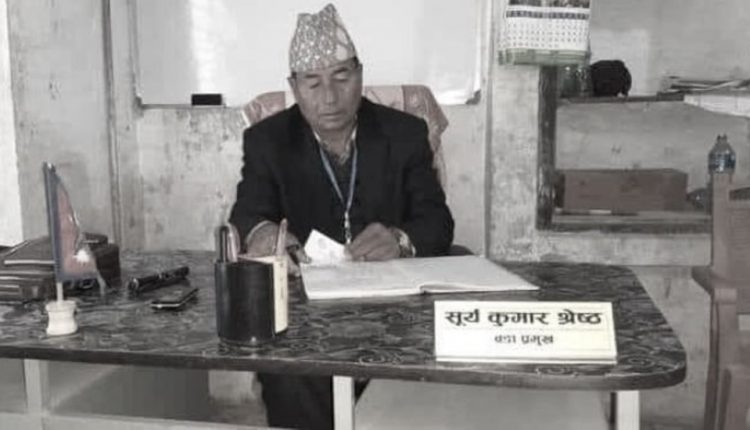 काठमाडौं । सर्लाहीमा वडाध्यक्षको हत्या भएको छ । ईश्वरपुर नगरपालिका–३ भक्तिपुरका वडाध्यक्ष सूर्यकुमार श्रेष्ठको शुक्रबार राति हत्या भएको जिल्लाा प्रहरी कार्यालय सर्लाहीले जनाएको छ ।