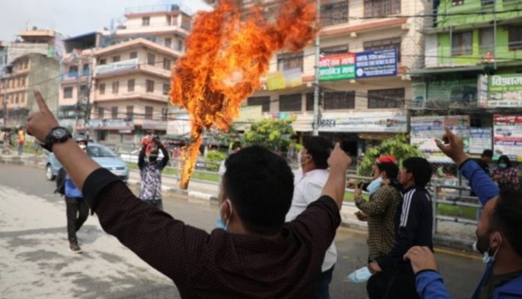 काठमाडौं । निर्वतमान प्रधानमन्त्री एवम् नेकपा (एमाले)का अध्यक्ष केपी शर्मा ओली समर्थक युवा संघका कार्यकर्ताले पार्टीका वरिष्ठ नेता माधव कुमार नेपालको पुत्ला दहन गरेका छन् ।