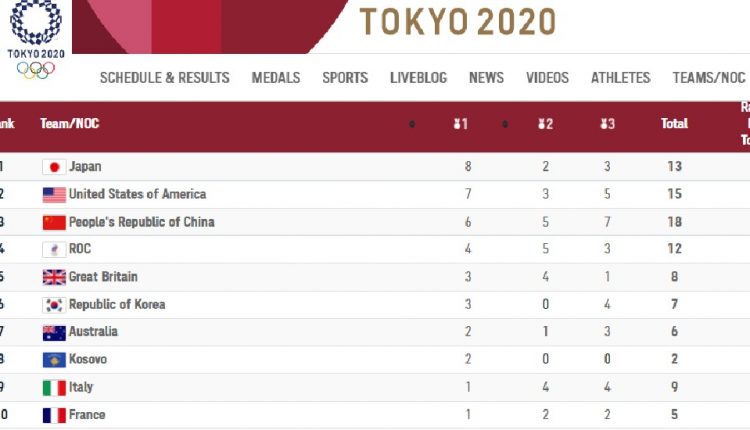 काठमाडौं । जापानको राजधानी टोकियोमा जारी ३२औँ ग्रीष्मकालीन ओलम्पिकमा आयोजक जापान पदक तालिकाको शीर्ष स्थानमा उक्लेको छ । अमेरिका र चीनलाई उछिन्दै जापान शीर्ष स्थानमा ओगट्न सफल भएको हो ।