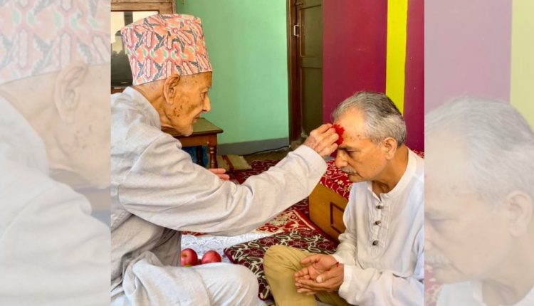 पूर्वप्रधानमन्त्री भट्टराईले बुबाको हातबाट लगाए टीका