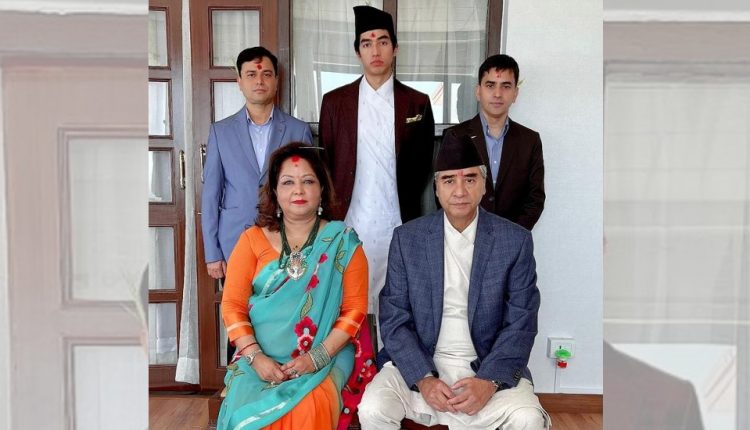 त्यस अवसरमा प्रधानमन्त्री देउवाले श्रीमती आरजु देउवा र छोरा जयवीर देउवालाई दसैँको टीका लगाइदिए ।