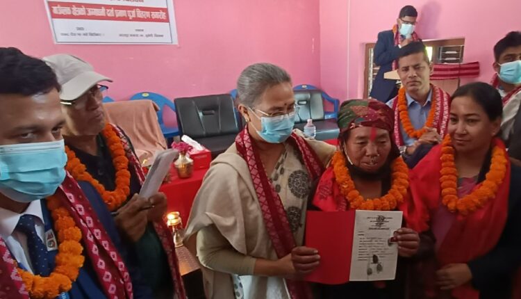 चितवन । भूमि, व्यवस्था, सहकारी तथा गरिबी निवारणमन्त्री शशी श्रेष्ठले चितवनको भरतपुर महानगरपालिकाको गाउँब्लकमा रहेका भूमिविहीनहरुलाई आज जग्गा धनी दर्ता प्रमाण पुर्जा (लालपुर्जा) वितरण गरेकी छन् ।