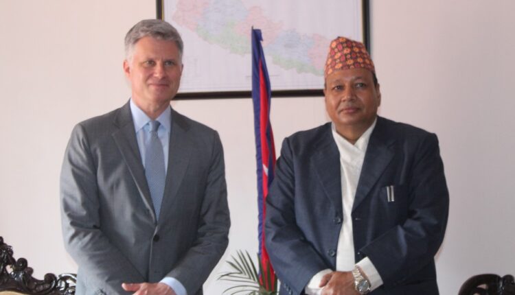 काठमाडौँ । शिक्षा, विज्ञान तथा प्रविधिमन्त्री देवेन्द्र पौडेल र क्यानडाका गैरआवसीय राजदूत क्यामेरन डिन मकाईसँग शिष्टचार भेटवार्ता भएको छ । मंगलबार मन्त्रालयमा शैक्षिक विकासका लागि मन्त्री पौडेल र राजदूत मकाईबीच शिष्टचार भेटवार्ता भएको हो ।