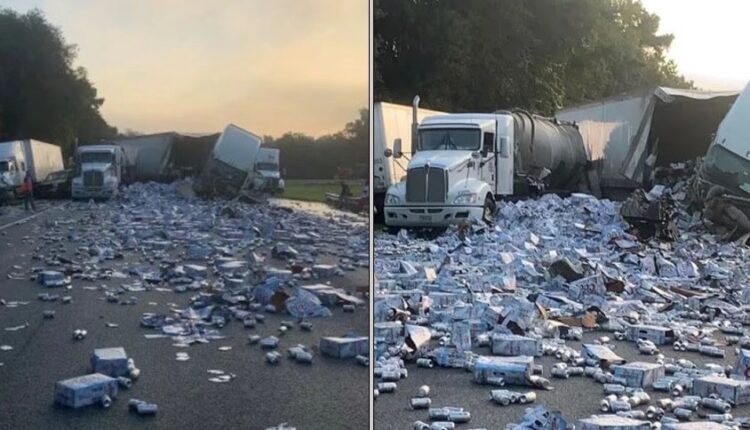 बियर बोकेको उक्त सेमी ट्रेलर सडक छेउमा रहेको ट्रकहरूमा गएर ठोक्किएको थियो । हजारौँ क्यान पोखिएपछि राजमार्गको सबै लेन बन्द भयो ।