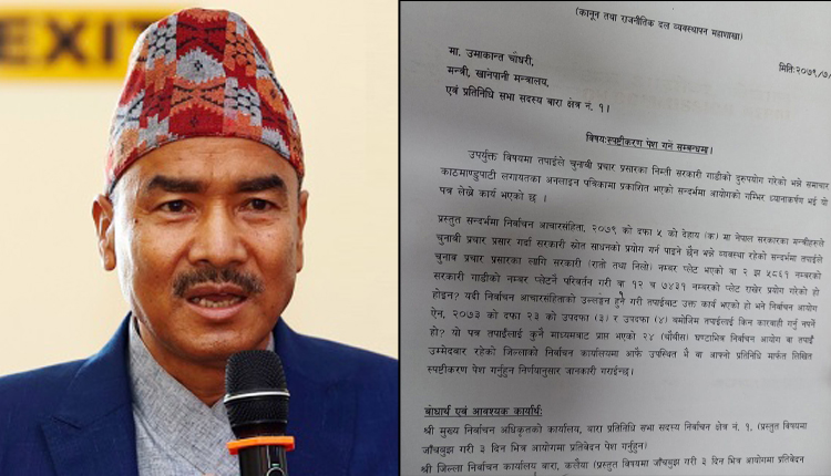 चुनाव प्रचार–प्रसारमा सरकारी गाडी दुरुपयोग गरेको उजुरीका आधारमा उनलाई आयोगले स्पष्टीकरण सोधेको हो ।