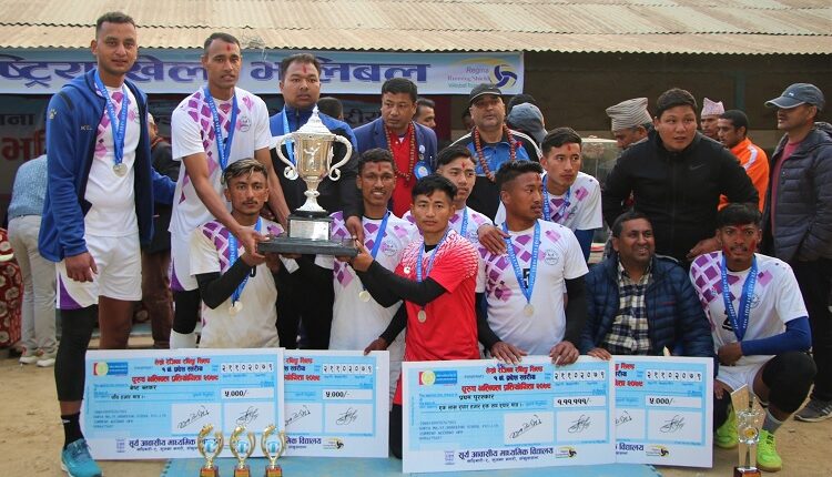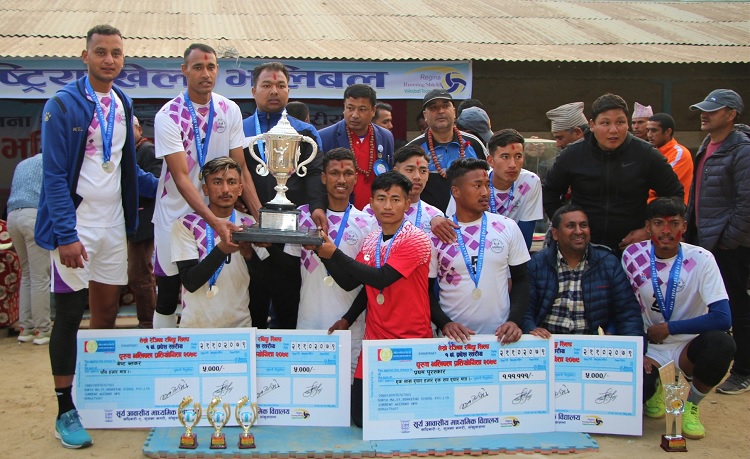 सङ्खुवासभाको खाँदबारीमा शनिबार भएको फाइनलमा भोजपुर भलिबल टिमलाई ३–१ को अन्तरले हराउँदै ओखलढुंगाले उपाधि जितेको हो । प्रतियोगितामा झापा तेस्रो र पाँचथर चौथो भएको छ ।