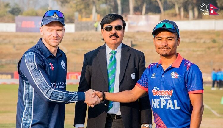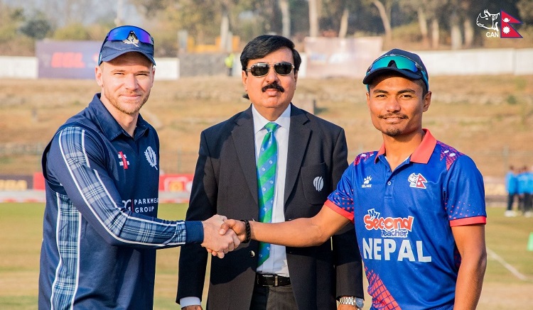 काठमाडौँ, ९ फागुन । आइसिसी विश्वकप क्रिकेट लिग–२ एकदिवसीय श्रृंखलाअन्तर्गत नेपालले स्कटल्यान्डविरूद्ध टस जितेर पहिले फिल्डिङ गर्ने निर्णय लिएको छ । त्रिवि अन्तर्राष्ट्रिय क्रिकेट मैदानमा नेपालका कप्तान रोहित पौडेलले टस जितेर पहिला बलिङ गर्ने निर्णय लिएका हुन् ।