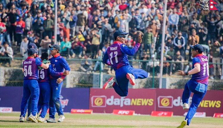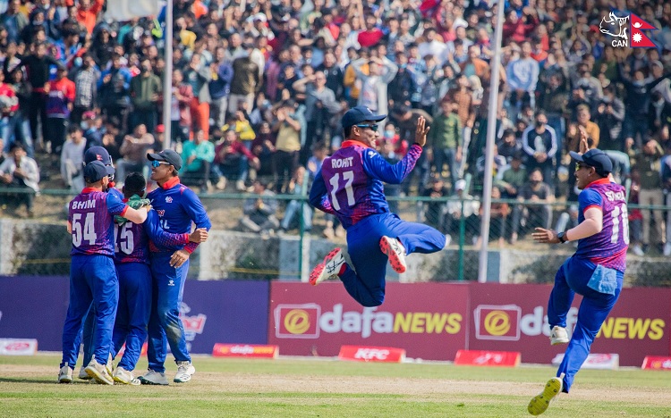 यस्तै, भीम सार्कीले ४४ रन जोड्दा कप्तान रोहित पौडेल ३० रनमा आउट भए । आरिफ शेखले १५, ज्ञानेन्द्र मल्लले ११, करण केसीले ८ तथा सन्दीप लामिछाने ७ रन बनाए ।