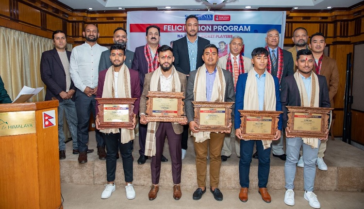 काठमाडौँ, १७ चैत । फिनिक्स कलेज अफ म्यानेजमेन्टले राष्ट्रिय क्रिकेट टोलीका पाँच जना खेलाडीलाई नगदसहित सम्मान गरेको छ ।