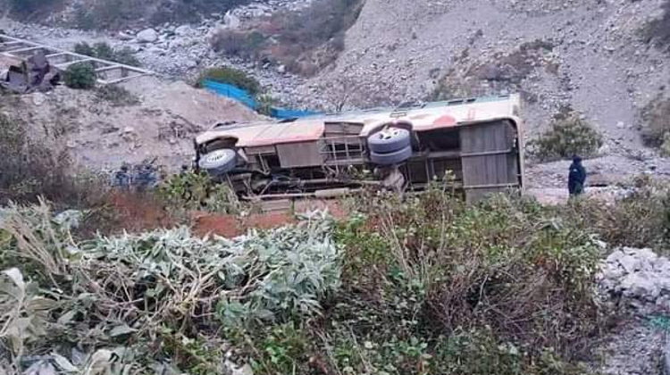 दार्चुला, ५ माघ । दार्चुला जिल्ला सदरमुकाम खलंगाबाट महेन्द्रनगरतर्फ जाँदै गरेको सु.प.प्र.०२ ००१ ख १०३१ नम्बरको बस महाकाली नगरपालिका–५ स्थित डम्पिङ साइडनजिकै आज बिहान दुर्घटना हुँदा १५ जना यात्रु घाइते भएका छन् ।