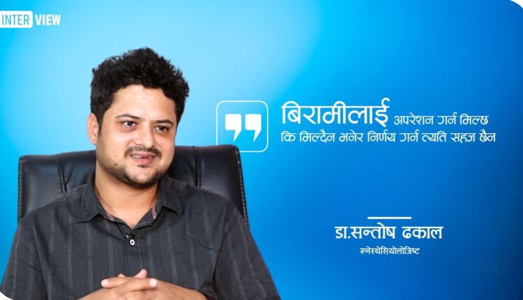 डा.सन्तोष ढकाल मणिपाल अस्पताल पोखरामा कार्यरत हुनुहुन्छ । अस्पतालमा एनेस्थेसियोलोजिष्टका रुपमा १३ वर्षदेखि कार्यरत डा.ढकालको भूमिका तुलनात्मक रुपमा अलिक भिन्न छ । अपरेसन गर्नुपर्ने बिरामीलाई असहज÷दुखाई महसुस नहोस् र सँगै डाक्टरलाई पनि शल्यक्रियाका लागि उचित वातावरण मिलोस् भन्न हेतु प्रारम्भमा बेहोस बनाउनेदेखि अपरेसनपछि पनि नियमित रेखदेखको भूमिका एनेस्थेसियोलोजिष्टको हुन्छ । यसै सिलसिलामा डा.ढकालसँग नेपाल न्यूज बैंकले संक्षिप्त कुराकानी गरेको छ ।
