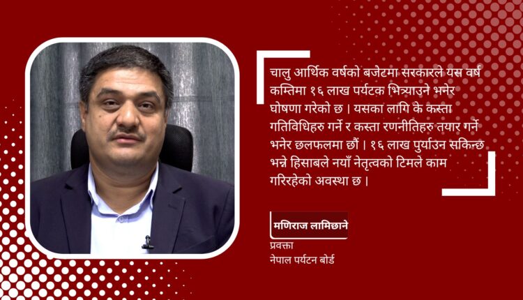 यतिबेला हामी बजेटले पुनःलेखन गर्ने काम गरिरहेका छौँ । पर्यटन गतिविधि गर्न र जतिसक्दो प्रवद्र्धनका कार्यक्रमको तयारीमा जुटेका छौं । चालु आर्थिक वर्षको बजेटमा सरकारले यस वर्ष कम्तिमा १६ लाख पर्यटक भित्र्याउने भनेर घोषणा गरेको छ । यसका लागि के कस्ता गतिविधिहरु गर्ने र कस्ता रणनीतिहरु तयार गर्ने भनेर छलफलमा छौँ । १६ लाख पुर्याउन सकिन्छ भन्ने हिसाबले नयाँ नेतृत्वको सम्पूर्ण टिमले काम गरिरहेको अवस्था छ ।