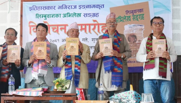 काठमाडौँ, २१ असोज । इतिहास अन्वेषक भगिराज इङ्नामले ‘लिम्बुवानका अभिलेख सङ्ग्रह’ कृति प्रकाशनमा ल्याउनुभएको छ । मुन्धुम एकाडेमी प्रकाशक रहेको यस कृति नेपाल प्रज्ञा प्रतिष्ठानका पूर्वकुलपति वैरागी काइँलालगायतले विमोचन गर्नुभयो ।