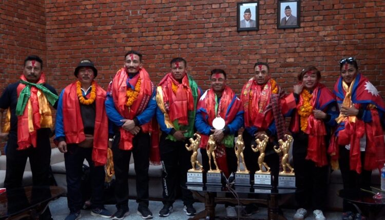 च्याम्पियनसिपमा पदक विजेता बडीबिल्डरहरु रुजेश शाही, प्रज्वलमान शाक्य र रजनी श्रेष्ठको टोलीलाई त्रिभुवन अन्तरराष्ट्रिय विमानस्थलमा भव्य स्वागत गरिएको छ ।