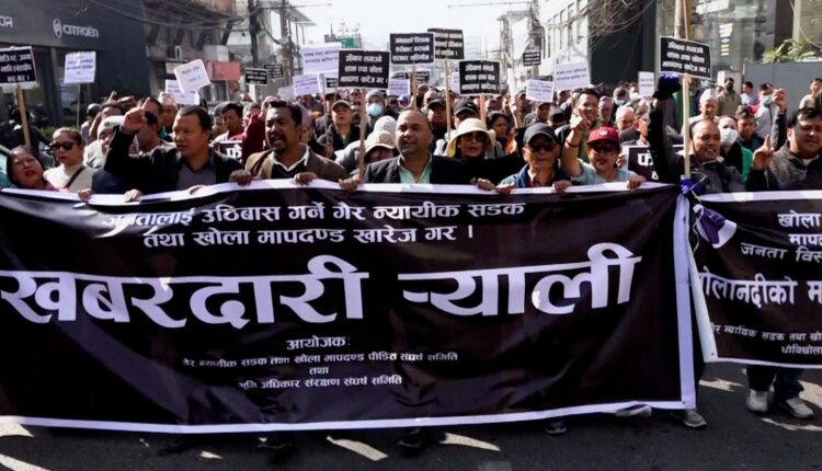 खोला तथा सडक मापदण्ड खारेजीको माग गर्दै प्रदर्शन