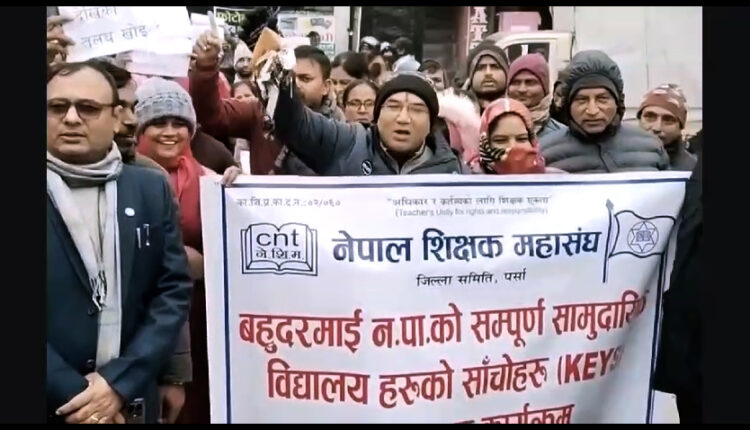 पर्सा, ७ माघ । पर्साको बहुदरमाई नगरपालिकाभित्र रहेका २० सामुदायिक विद्यालयका शिक्षक–शिक्षिकाहरु आन्दोलित भएका छन् । नेपाल शिक्षक महासंघ पर्साको अगुवाइमा आइतबारदेखि विद्यालयमा ताल्चा लगाएर शिक्षक–शिक्षिकाहरुले पठनपाठन बन्द गरेका हुन् ।