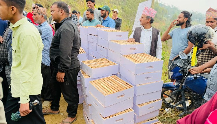यहाँ आयोजित एक कार्यक्रमकाबीच भूमिकास्थान नगरपालिकाका प्रमुख झविलाल थापा, उपप्रमुख बालाकृष्ण बञ्जाडे, प्रमुख प्रशासकीय अधिकृत जग्दिशचन्द्र नेपाली र सहकारीका अध्यक्ष भुवानन्द भुसालले किसानलाई मौरीसहित आवश्यक सामग्री वितरण गर्नुभएको हो ।