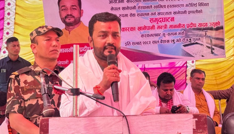 बारा, ३० वैशाख । खानेपानीमन्त्री प्रदीप यादवले खपरताता खानेपानी आयोजनाले बारास्थित कलैया उपमहानगरपालिका–८ का स्थानीयको खानेपानीको समस्या समाधान हुने विश्वास व्यक्त गर्नुभएको छ ।