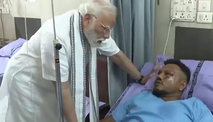 शुक्रबार अहमदावादस्थित सिभिल अस्पताल पुगेर मोदीले रमेशलाई भेट गरेका हुन् । रमेश २४२ यात्रु सवार बोइङ ७८७(८ उडानमा बचेका एक मात्र यात्रु हुन् ।