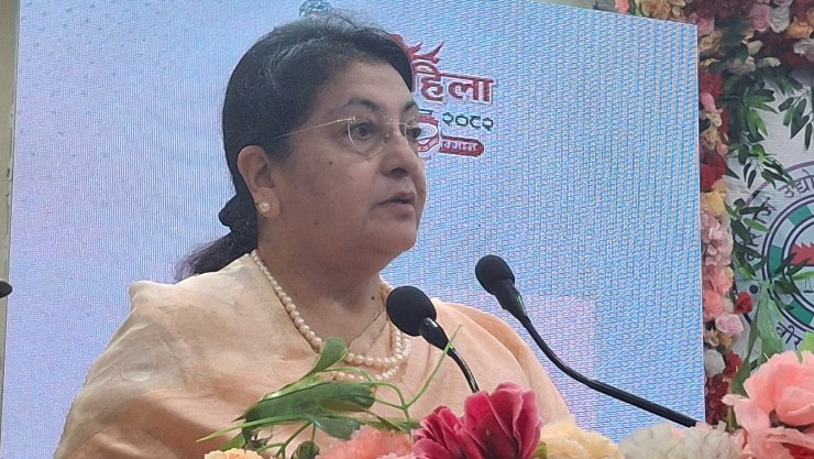 वीरगञ्ज उद्योग वाणिज्य सङ्घद्वारा आज यहाँ आयोजित ‘नारीः शक्ति, समर्पण र सम्मान’ विषयक बृहत् महिला सम्मेलनको उद्घाटन गर्दै पूर्वराष्ट्रपति भण्डारीले परिवार निर्माणदेखि उद्योग–व्यवसाय, शिक्षा, स्वास्थ्य र सामाजिक रुपान्तरणसम्म महिलाको योगदान सधैँ अग्रपङ्क्तिमा रहँदै आएको बताउनुभयो । उहाँले महिलालाई आत्मनिर्भर बनाउन अवसरसँगै सबैको ऐक्यबद्धता आवश्यक पर्ने खाँचो औँल्याउनुभयो ।