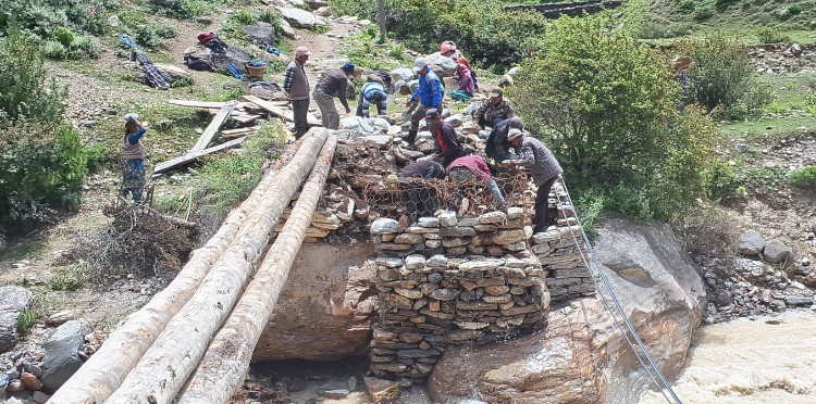 अहिले गाउँपालिकाको छाङ्गरुदेखि तिङ्कर गाउँ जाने तीन काठे पुल सुरक्षाकर्मी, जनप्रतिनिधि र स्थानीयले श्रमदानमा निर्माण गरेको वडाध्यक्ष अशोकसिंह बोहराले बताउनुभयो । बोहराका अनुसार नाम्पा खोला, तिङ्कर खोलामा बगाएको काठे पुल अहिले लगाएर आवतजावत गर्न सुरु गरिएको छ । उहाँले केही ठाउँमा हिँड्डुल गर्न सक्ने गरी बाटो पनि खोलेको तर पशुचौपायासहित हिँड्डुल गर्न भने अझै बाटो नबनेको बताउनुभयो । उहाँले भन्नुभयो, “बाटो निर्माणका लागि ठुलो रकमको आवश्यकत्ता छ, दुई वर्षअघि गाउँपालिकाले ठेक्का आह्वान गरेर पैदलबाटो निर्माण गरेको थियो, तर त्यो पूरै बाढीले कटान गरेपछि तिङ्करबासीलाई समस्या भएको छ ।” -रासस