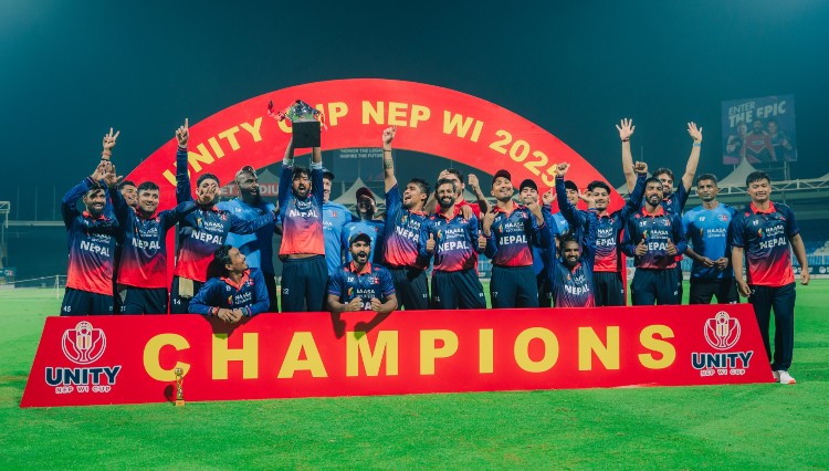 काठमाडौँ, १५ असोज । नेपालमा गत भदौ २३ तथा २४ गते भएको जेन्जी आन्दोलनका सिलसिलामा ७४ जनाको दुःखद् निधन हुनुका साथै हजारौँ सर्वसाधारण घाइते भइ मुलुकवासी नै आहत भइरहेको बेला नेपाली क्रिकेट खेलाडीहरुले थोरै भए पनि मल्हम लगाउने प्रयास गरेका छन् । नेपाली राष्ट्रिय पुरुष क्रिकेट टिमले ऐतिहासिक जितको माध्यमबाट मुलुकको प्रतिष्ठा बढाउन योगदान गरेका छन् । विश्वमै शक्तिशाली क्रिकेट टिमका रुपमा स्थापित वेस्ट इन्डिजलाई टी–२० तीन दिवसीय क्रिकेट शृङ्खलामा पराजित गरेपछि अन्तर्राष्ट्रिय क्रिकेट जगतमा नेपालको चर्चा चुलिएको छ ।