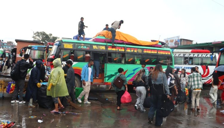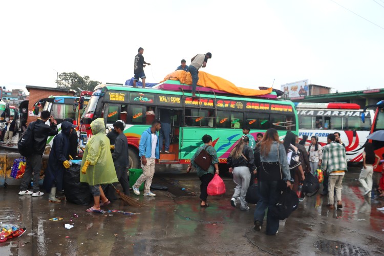 काठमाडौँ, १८ असोज । मुलुकका अधिकांश स्थानमा परिरहेको भारी वर्षासँगै आज बिहानैदेखि उपत्यकाबाट बाहिरिएका सवारीसाधन धमाधम उपत्यकामा नै फर्किन थालेका छन् । काठमाडौँ उपत्यका ट्राफिक प्रहरी कार्यालयले विभिन्न राजमार्गमा पहिरो जान थालेपछि सुरक्षित रहन सवारीसाधन उपत्यकामा नै फर्किन थालेको जानकारी दिएको छ ।