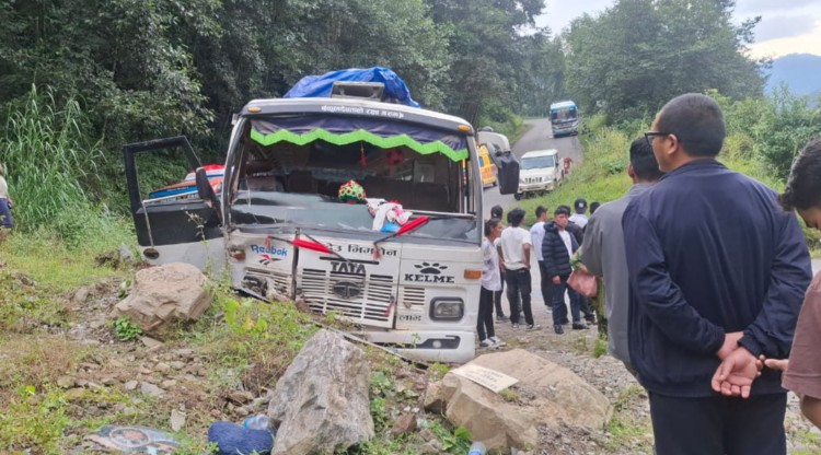 रामेछापबाट चरिकोट हुँदै काठमाडौँतर्फ जाँदै गरेको बा प्र ०३–००१ ख २५२१ नम्बरको बस अनियन्त्रित भई सडकको भित्तामा ठोक्किएर मङ्गलबार साँझ दुर्घटना भएको प्रहरीले जनाएको छ ।