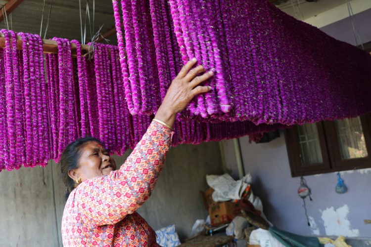 व्यवसायीक फूल खेतीमा रमाएका यहाँका महिलालाई आँगनदेखि बारीभरी लहरै झुलेका मखमली फूल टिपेर माला गाँस्न यतिखेर भ्याइनभ्याई भएको छ । बिहान ६ बजे बारी पुगेका महिलालाई फूल टिपेर डोको, डालो र बोरामा फूल लिएर घर आउनेबित्तिकै खाना खाएर फेरी दिनभरि माला गाँस्न र गाउँमै आएका व्यापारीलाई माला बिक्री गर्न भ्याइनभ्याई हुन्छ ।