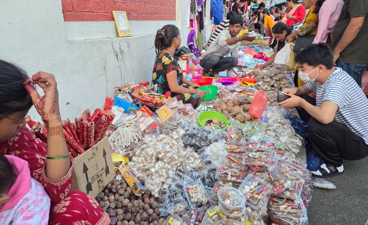 अहिले बजारका हरेक सडकपेटीमा सयौँ व्यापारी व्यस्त छन् । दियो, रङ, मिठाइ, किसमिस, पूजाका लागि माटाका पाला, बत्तीलगायत तिहारमा आवश्यक पर्ने सामग्री बिक्रीले बजार रङ, सुगन्ध र झिलिमिलीले भरिएको छ ।