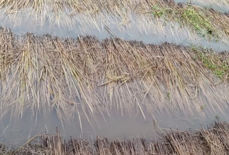 वर्षाले धानबालीमा क्षति भएपछि किसान चिन्तित