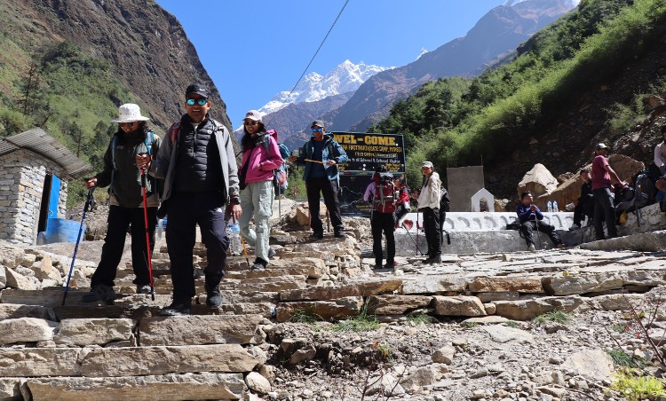 “चिसो बढे पनि पर्यटक आगमन रोकिएको छैन”, उहाँले भन्नुभयो, “पदमार्ग भ्रमण खुला भएपछि पर्यटकको चहलपहल बढेको छ ।” छोटो अवधिमा पहाडी र हिमाली क्षेत्रको एकैपटक साहसिक यात्रामा रुचि राख्नेहरूका लागि अन्नपूर्ण हिमालको आधार शिविर नयाँ गन्तव्यका रूपमा विकास भएको छ ।