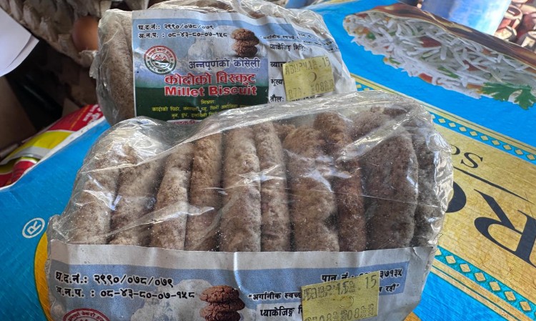 यसअघि धवलागिरि गाउँपालिका–७ ताकममा धवलागिरि बेकरी, क्याफे एण्ड एग्रो मार्टका सञ्चालक अनिल भण्डारीले कोदाको पीठो प्रशोधन गरी बिस्कुट उत्पादन गरेर बिक्री गर्दै आउनुभएको छ ।