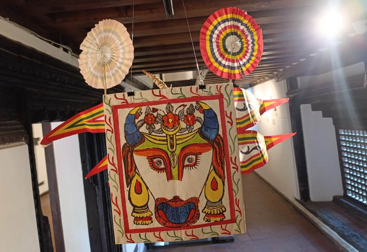एउटै कपडामा समूहसमूहमा चित्र सिर्जना गरिएको छ । पहिले पनि समूहमा चित्र बनाउने चलन थियो, त्यसैले अहिले पनि त्यहीअनुसार प्रयोग गरिएको छ । नेवारी संस्कृति गाइजात्रामा प्रयोग हुने ‘सपारु’लाई यहाँ सुन्दररूपमा प्रदर्शन गरिएको छ । गाईजात्रा निकाल्दा गाईको साङ्केतिक रूपमा मुकुण्डो प्रयोग गरिन्छ, सोही देखाइएको अध्यापक शाहीले बताउनुभयो ।