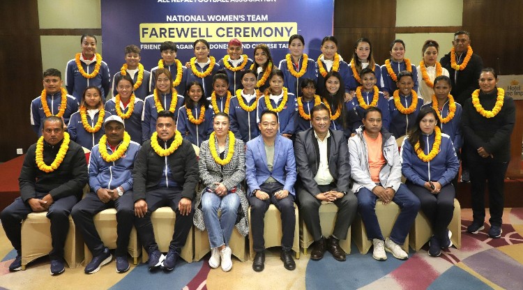 काठमाडौँ, ७ मङ्सिर । इन्डोनेसियामा आयोजना हुने फिफा टायर पहिलो त्रिपक्षीय अन्तर्राष्ट्रिय महिला फुटबल प्रतियोगितामा सहभागी हुन त्यसतर्फ प्रस्थान गर्न लागेको नेपाली राष्ट्रिय टोलीलाई आज बिदाइ गरिएको छ । कप्तान एञ्जिला सुब्बाको नेतृत्वमा जान लागेको २२ सदस्यीय टोलीलाई अखिल नेपाल फुटबल सङ्घका महासचिव किरण राईले बिदाइ गर्नुभयो ।